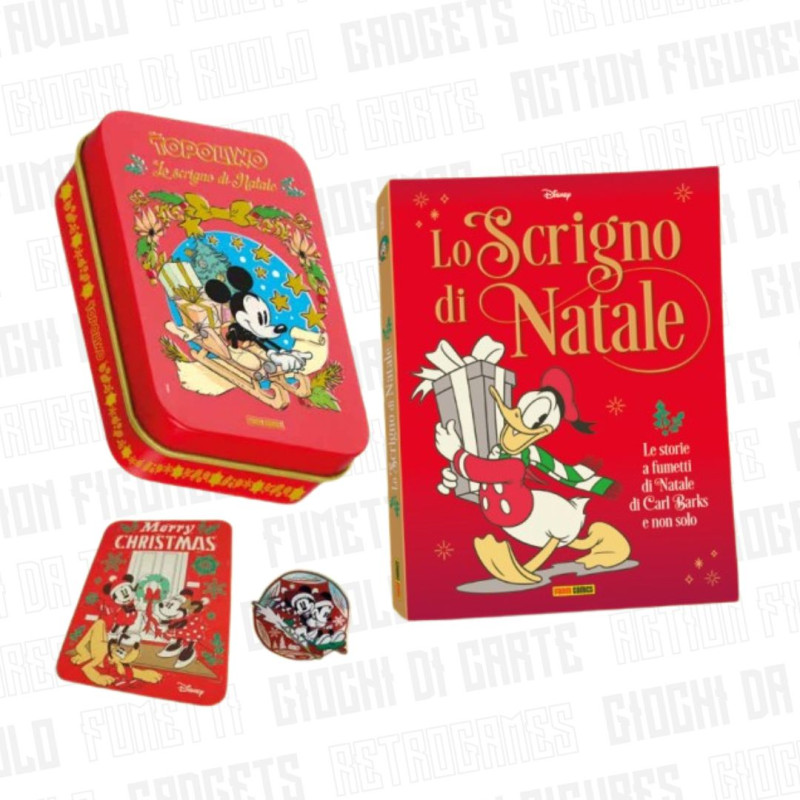 la magia del natale si rinnova come ogni anno riportando i lettori al mood un po’ rétro, e lo fa con un pregiato scrigno di metallo a tiratura limitata impreziosito da un’illustrazione sul coperchio realizzata da francesco d'ippolito con dettagli in rilievo. il cofanetto da collezione contiene un esclusivo decoro acrilico con effetto olografico perfetto per addobbare la casa in occasione delle feste, una targa metallica in stile vintage e un volume cartonato che raccoglie storie natalizie classiche e moderne, sottolineando il legame tra l'eredità dell'uomo dei paperi e il fumetto nordeuropeo. ogni episodio racconta la quotidianità di paperino e dei suoi cari tra preparativi e atmosfere festose. apre il volume l'evergreen paperino e la scavatrice, seguita da racconti più brevi di barks e alcuni inediti firmati dai maestri nordeuropei.